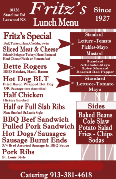 Bette Rogers and make sure you are hungry. All of Fritz's Sandwiches are plenty BIG!!!